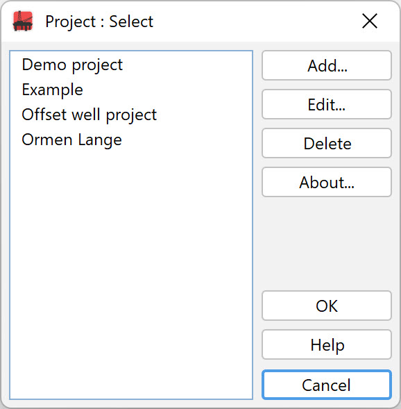 In the Wells & Outcrops module press the "..." button next to the project selector. You see the Project : Select dialog listing the projects already in the database:
